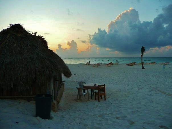 Mar Caribe Cabanas, Tulum, Mexico Posted on January 14, 2013 by admin There are only two of the rustic cabañas, make sure to ask for them. We found a table and chairs from a restaurant and borrowed them for our stay. Carrying a hammock certainly helps if you want to fit more people. Sunrise on the beach. Pretty impossible to beat. Share this with a friend:Click to share on Facebook (Opens in new window)Click to share on Twitter (Opens in new window)Click to email a link to a friend (Opens in new window)Click to share on Pinterest (Opens in new window)