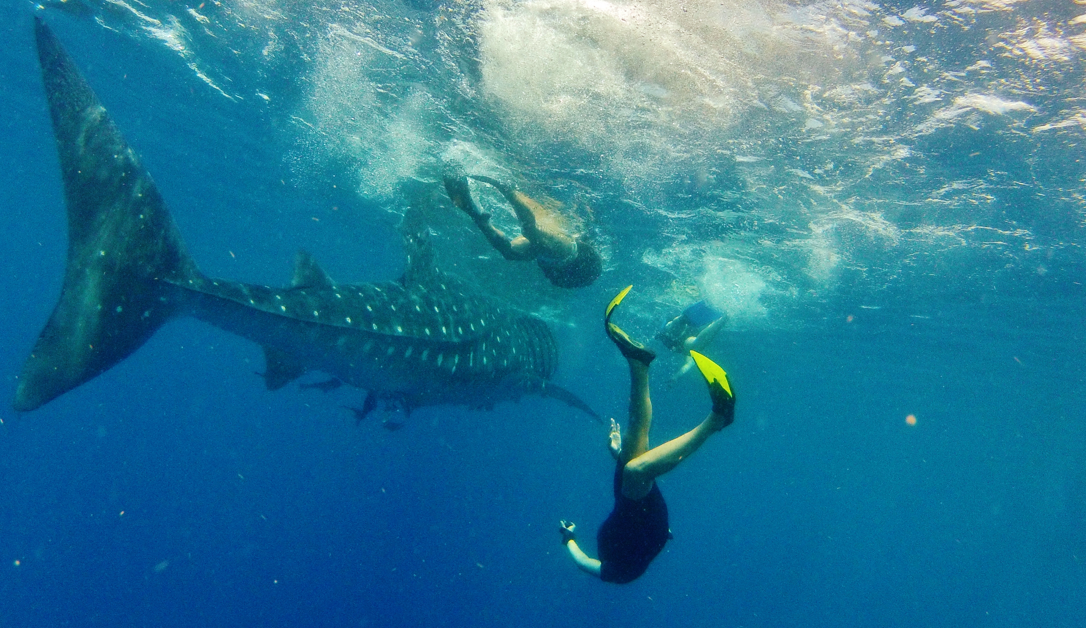 Whale shark in photos Posted on August 6, 2013 by admin Quick friendships are forged between human and beast.(photo – Jersen Barandica) It’s possible you’ll get an equally impressive show by the giant manta rays that also follow the plankton bloom. Swimming with giants. Take me back to Dive: Isla Mujeres and Whale shark snorkeling Share this with a friend:Click to share on Facebook (Opens in new window)Click to share on Twitter (Opens in new window)Click to email a link to a friend (Opens in new window)Click to share on Pinterest (Opens in new window)